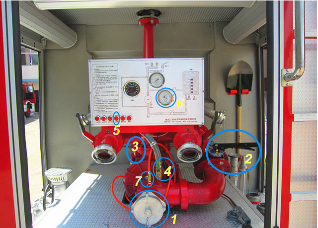 打開車輛總電源→打開儀表板電源按鈕→打開車輛取力器→打開吸水口接吸水管→打開真空泵開關(guān)(吸水口上面)→打開引水控制按鈕→打開后注水按鈕→車輛給油(真空表達到0.04MPa)→關(guān)閉引水控制→關(guān)閉真空泵開關(guān)→觀看液位表→吸水完成